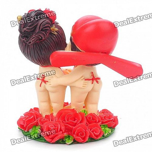 Cute Chinese Style Couple's Resin Display Toy Doll - Standing in The Flowers