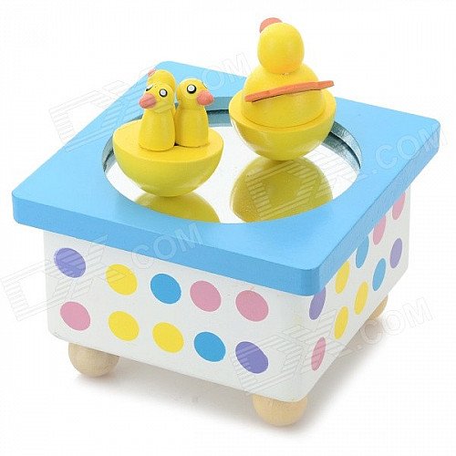Cute Duck Clockwork Spring Music Box - White + Yellow + Multi-Color