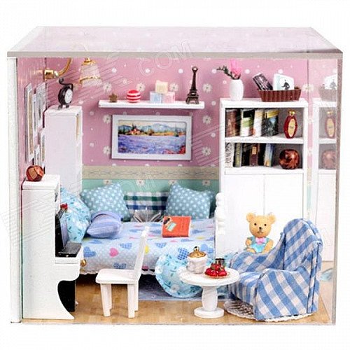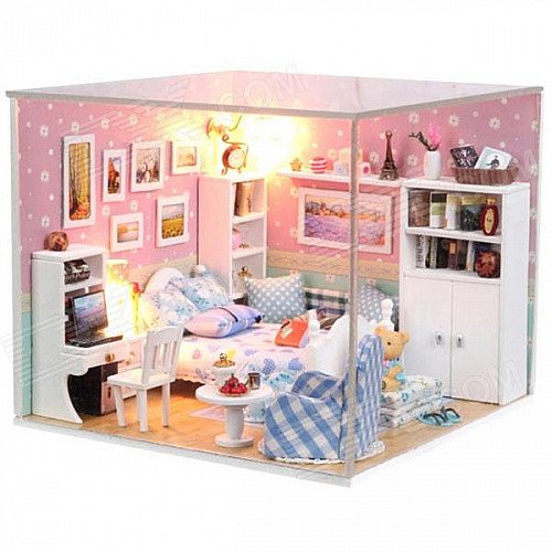 DIY Creative Cute Wooden Bedroom Model Toy - White + Pink + Multi-Colored