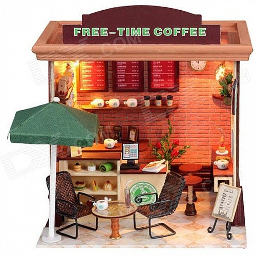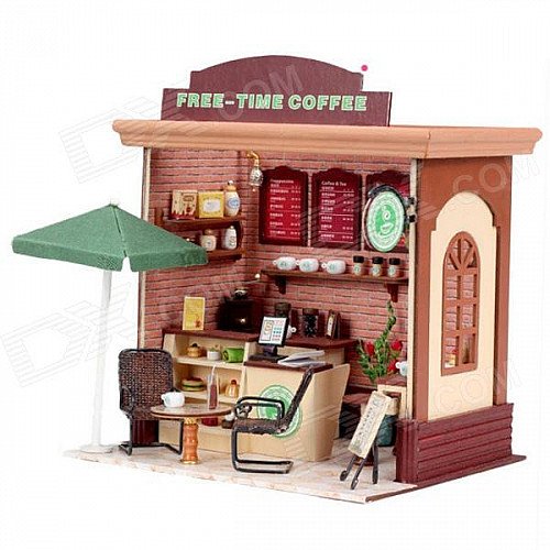 DIY Creative Cute Wooden Coffee House Model Toy - Deep Grey + Green + Multi-Color
