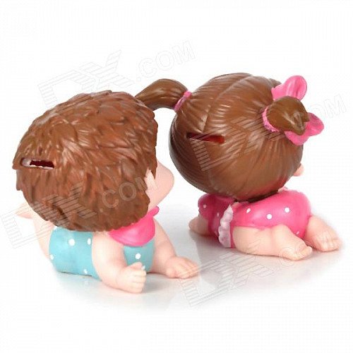 Lovely Boy + Girl Pattern Vinyl Piggy Bank Set - Pink + Blue + Brown (2 PCS)
