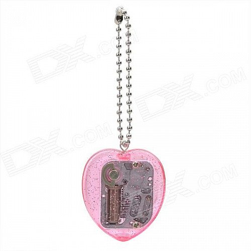 Mini Love Heart Style Wind-Up Mechanical Music Box w/ Keychain - Pink