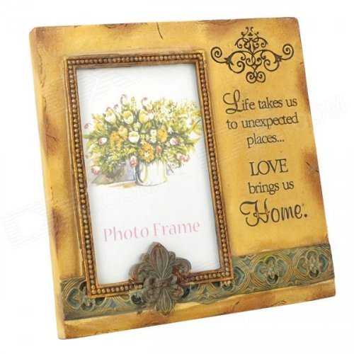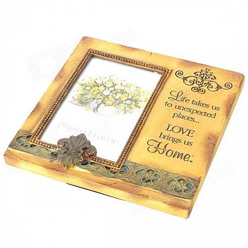 Retro English Letter Love Pattern Poly Resin Photo Frame - Beige