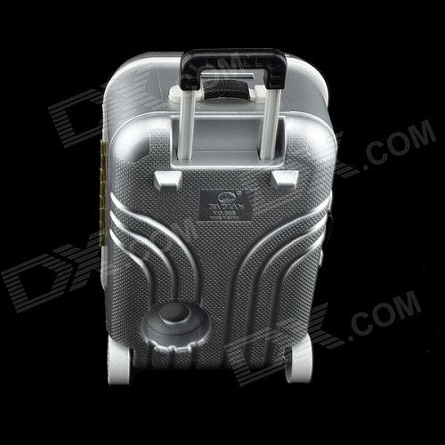 Like a real suitcase, can be carried with hand or with the rollers. Put coins or paper money in the coin bank, open the cover to take out money. Trendy and convenient.