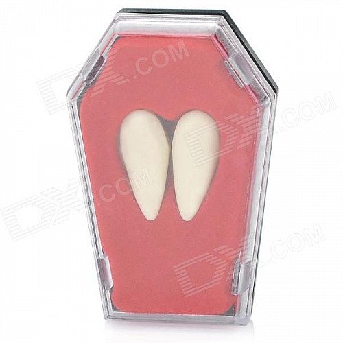 6341 Adult Scary Full Classic Vampire Corpse Dentures Fangs 2-Teeth for Halloween - White