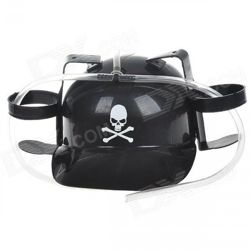 Beer Helmet Drinking Hat with Skull Figure - Black