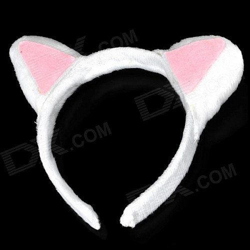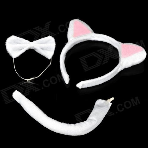 Cute Costume Party Holiday Cat Ears Headband + Bow Tie + Tail Set - White + Pink (3 PCS)