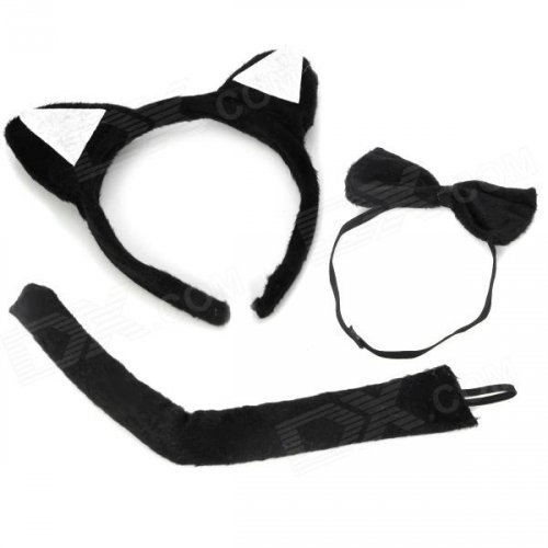 Cute Costume Party Holiday Wild Cat Ears Headband + Bow Tie + Tail Set - Black (3 PCS)