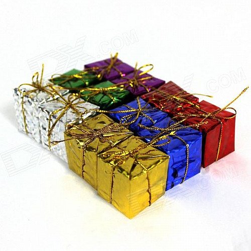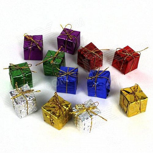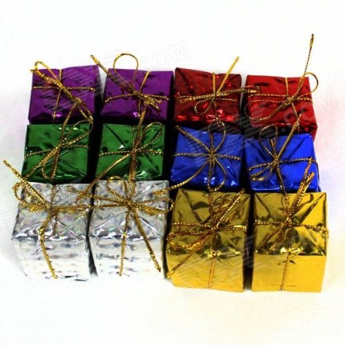 Decoration Gift Pendants for Christmas Tree - Yellow + Green + Purple + Blue + Red + Silver (12 PCS)