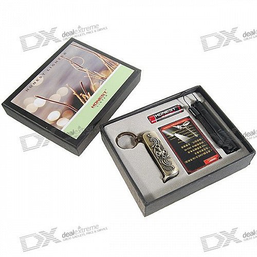 Honest Flame Butane Jet Torch Lighter + Flashlight + Tool Knife Set (1*AAA)