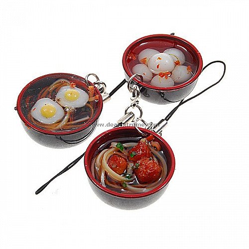 Assorted Cute Japanese Dishes Cellphone Straps (3-Pack)