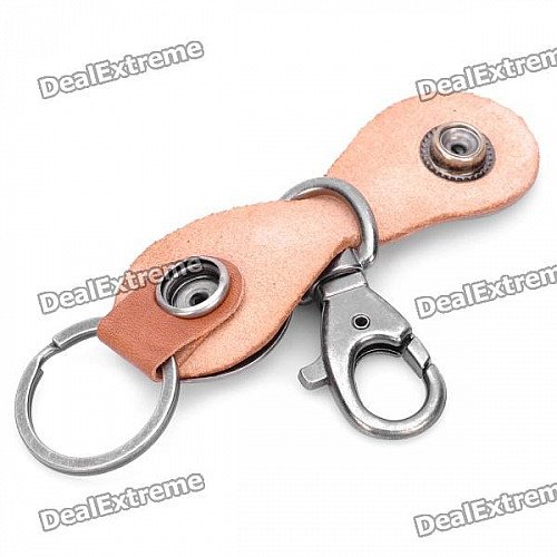 Cool Army Star Designed Cow Leather + Zinc Alloy Keychain - Brown + Silver