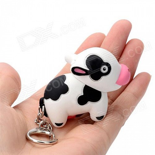 Cow Style LED Light Plastic Keychain - White + Black + Red (3 x AG10)