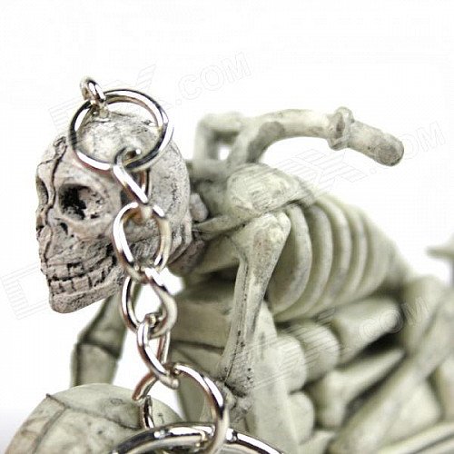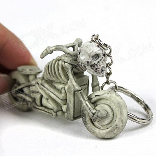 Creative Motorcycle Skull Rubber Keychain - Grey + Silver