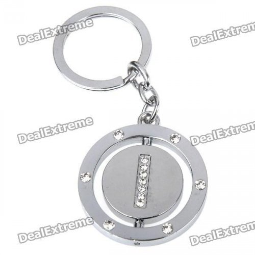 Double Side Round Stainless Keychain Ring Letter I