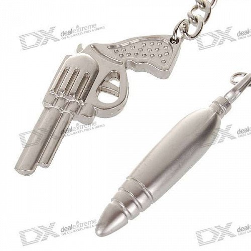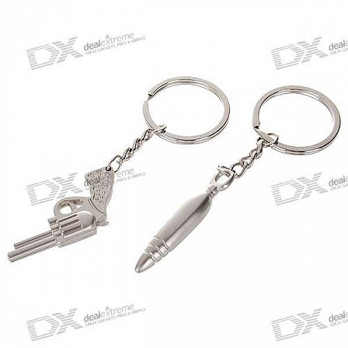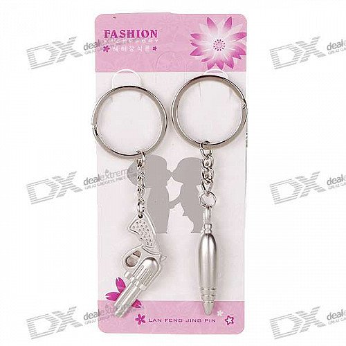 Gun and Bullet Shaped Zinc Alloy Lovers Keychains (2-Piece Set)
