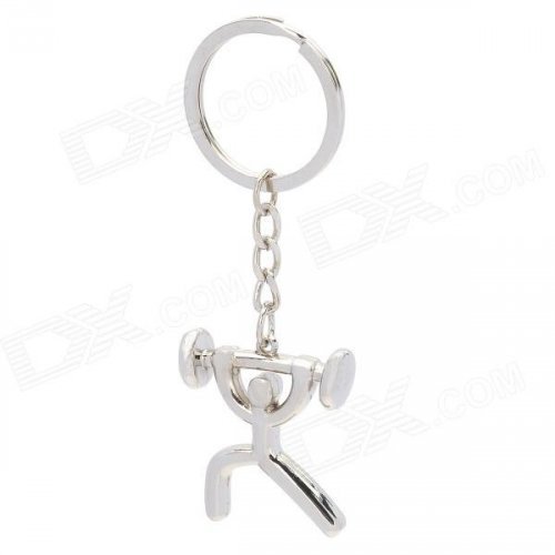 Human Weightlifting Zinc Alloy Keychain - Silver