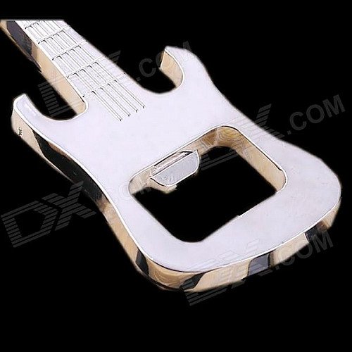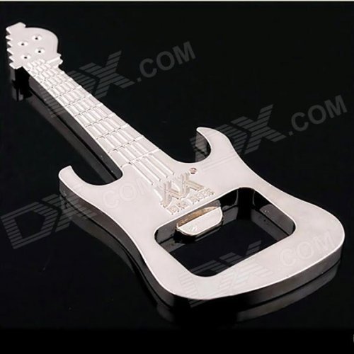 Portable Creative Guitar Shaped Bottle Opener Keychain - Silver