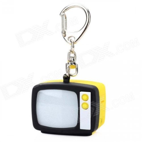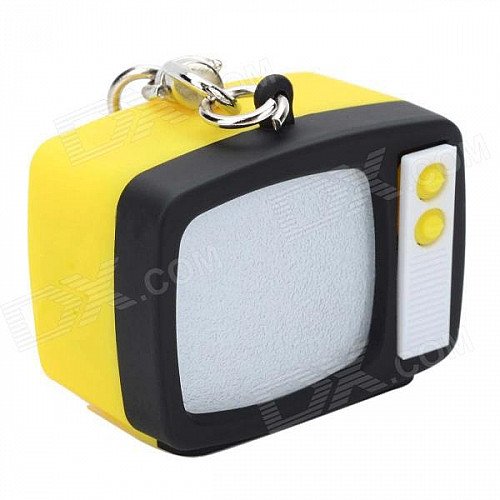 Retro TV Style Keychain w/ TV Static Noise Sound & LED Light Effects - Black + Yellow (3 x AG10)