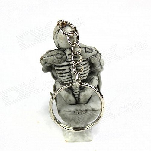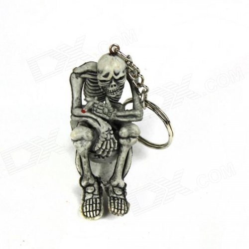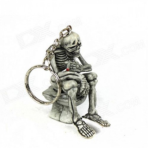 Skeleton on the Toilet Style Rubber Keychain - Grey + Silver