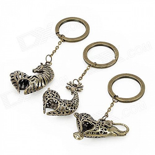 Stylish Skeleton Elephant / Deer / Zebra Shape Keychain Set - Coppery (3 PCS)