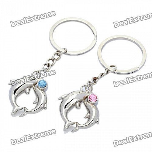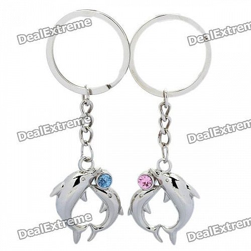Sweet Dolphin Style Couple Lovers Keychain - Silver (Pair)
