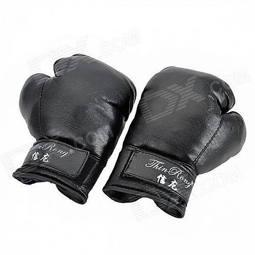 Professional PU Leather Boxing Training Gloves - Black (Pair)