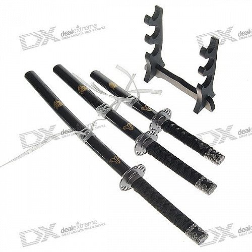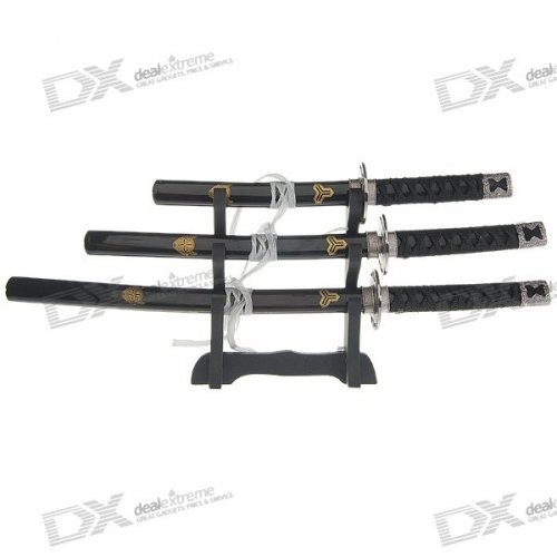 Unsharpened Trainer Stainless Steel Katanas with Stand (27/35/40cm 3-Katana Set)
