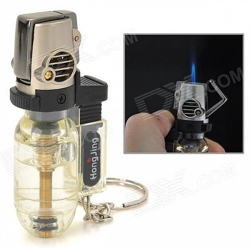 1300 Centigrade Windproof Blue Butane Jet Torch Lighter w / Keychain - Transparent + Silver + Black