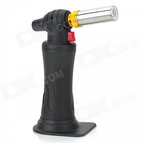 1300'C Stainless Steel Adjustable Flame Butane Jet Torch Lighter w/ Stand - Black + Silver