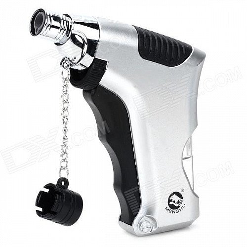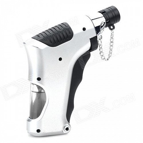 1300'C Windproof Butane Gas Jet Lighter - Silver + Black