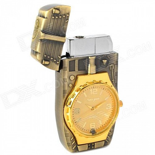 - Tank style windproof lighter with quartz watch