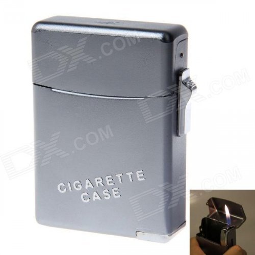 2-in-1 Zinc Alloy Orange Flame Butane Gas Lighter w/ Cigarette Case - Grey