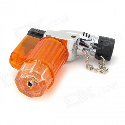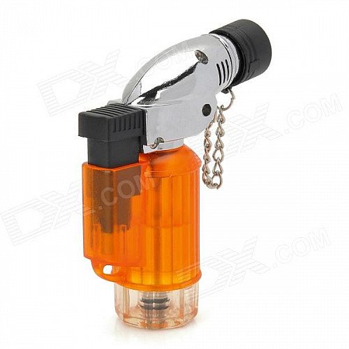 355 1300 Centigrade Windproof Blue Flame Butane Jet Torch Lighter - Translucent Orange + Silver
