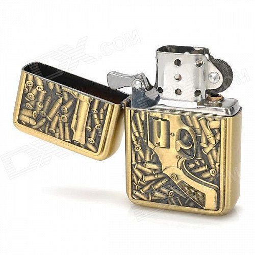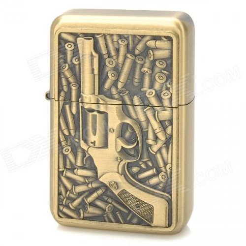 3D Bullet and Pistol Style Zinc Alloy Fuel Oil Lighter - Golden