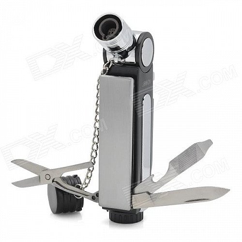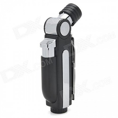 4-in-1 Multi-Functional Windproof Butane Jet Lighter w/ Scissor / Knife / Bottle Opener - Black