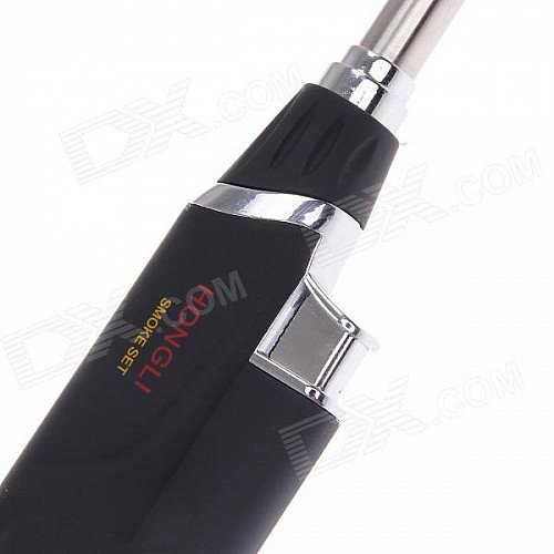 Adjustable Fuel Orange Flame Oil Lighter w/ Long Mouth - Black + Silver