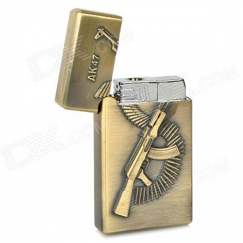 AK47 Pattern Dual Lamp Windproof Steel Butane Gas Lighter - Bronze