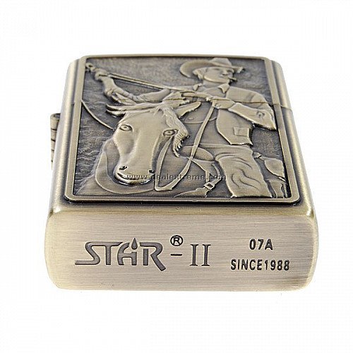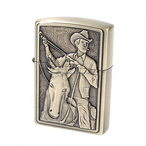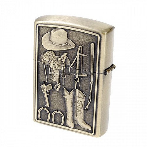 Antique Copper Metallic Oil Lighter (Cowboy Theme)