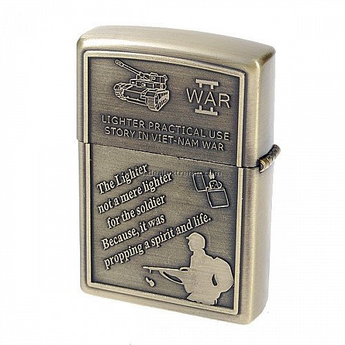 The antique copper metallic oil lighter is very durable and convenient to use. The war theme pattern is very cool. The lighter is perfect for daily use or a gift to your friend.