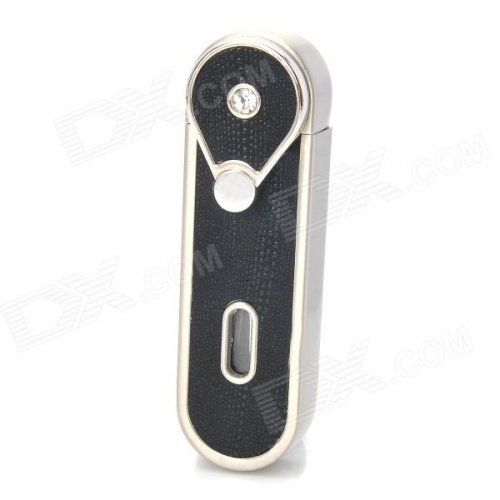Artificial Leather Coated Stainless Steel Butane Jet Lighter w/ Green Backlight - Black + Silver