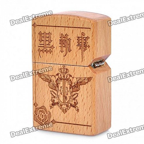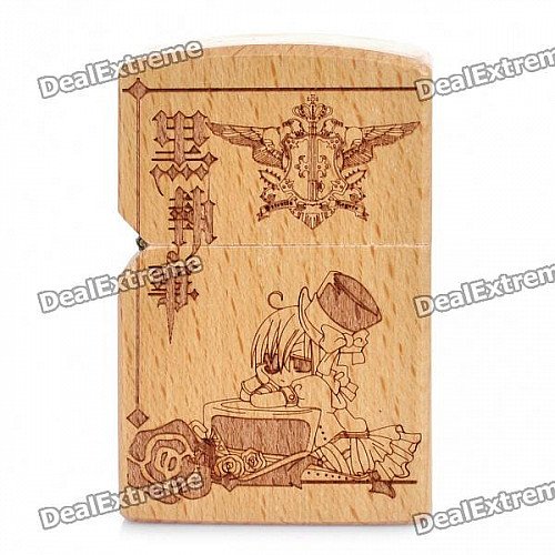 Black Butler Image Double Wooden Carved Anime Oil lighter - Light Brown