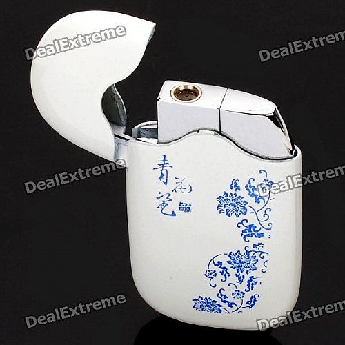 Blue and White Porcelain Pattern Metal Butane Lighter - White + Blue