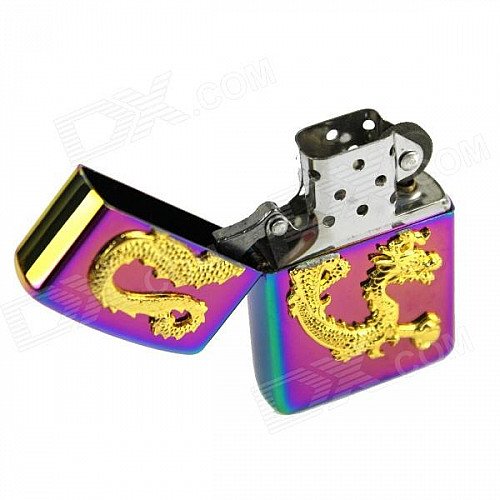 Colorful Chinese Dragon Relievo Kerosene Lighter - Purple + Golden