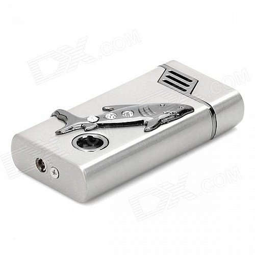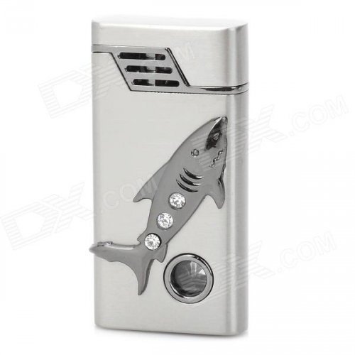 Cool Crystal Inlaid Shark Relievo Windproof Jet Lighter w/ LED - Silver (1 x AG3)