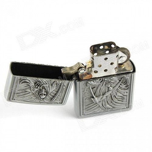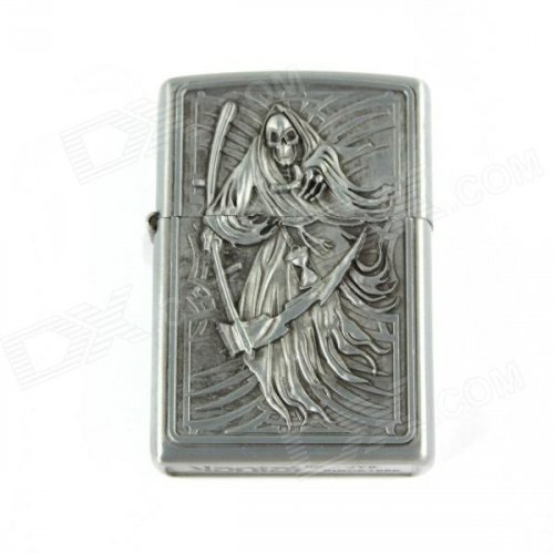 Cool Death Scythe Relievo Kerosene Lighter - Silver