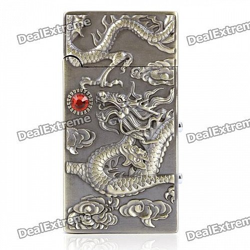 Cool Dragon Pattern Butane Lighter with White 1-LED Light & Money Detector - Bronze (1 x AC3)