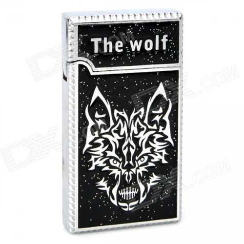 Cool Wolf Head Pattern Butane Gas Lighter - Black + Silver