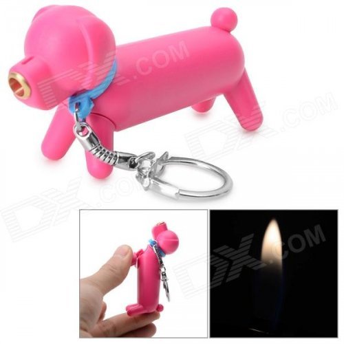 Cute Cartoon Dog Red Flame Butane Lighter - Deep Pink + Blue