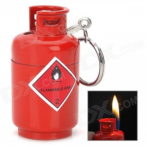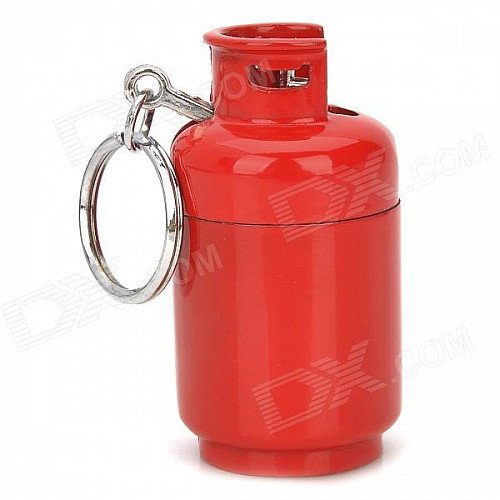 D001 Cool Gas Jar Shape Butane Yellow Flame Lighter w/ Keychain - Red